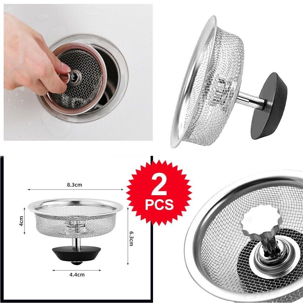 2x Kitchen Waste Sink Strainer Stainless Steel Waste Plug Filter Drain Stopper