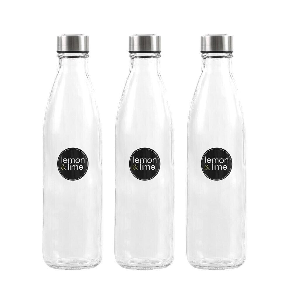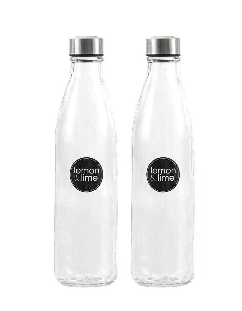 2x Large Glass Water Sports Bottle Juice Milk Beverage 1L Screw Top - 1000ml