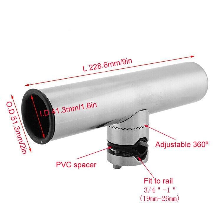 2x Marine Grade Stainless Steel Boat Fishing Rod Holders 7/8"-1"