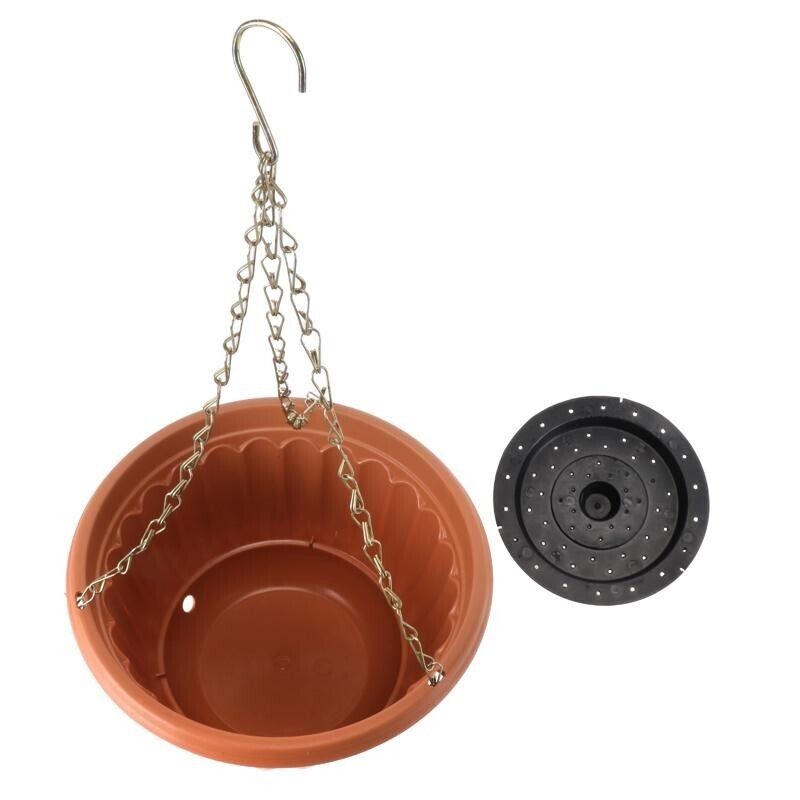 2x Planter Pot Round Hanging Chain Green & Terracotta 25cm x 25cm x 15cm