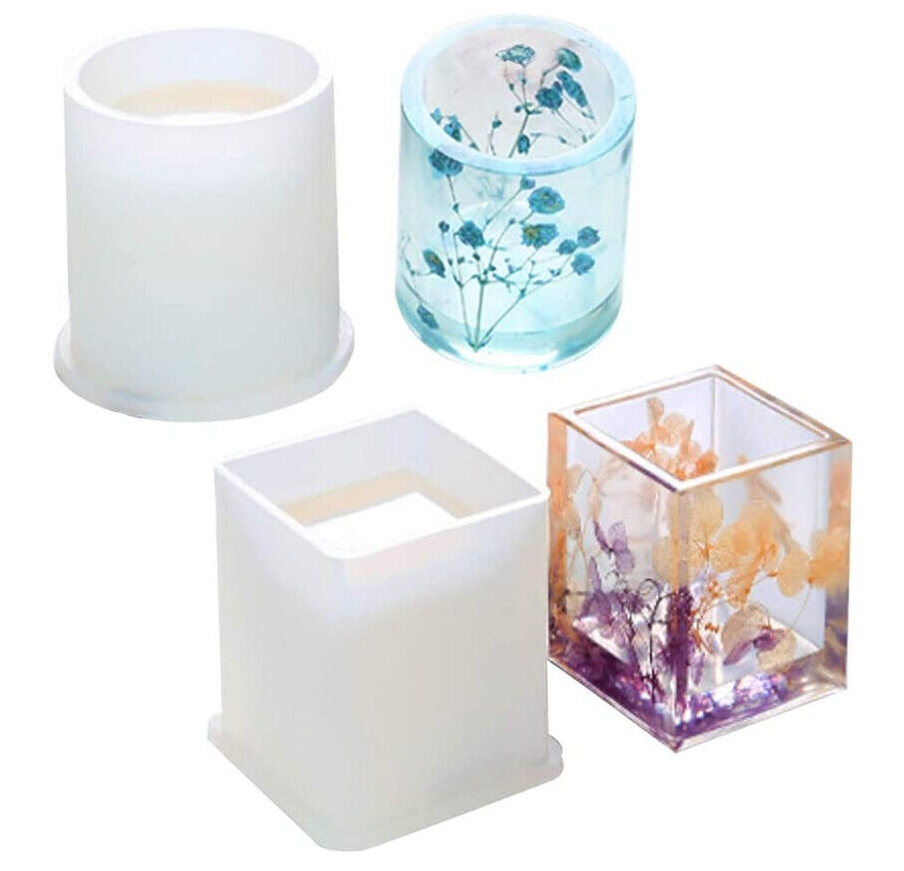2x Silicone Mold Set Resin Epoxy Crafts Making Brush Pot Pen Holder Mould DIY