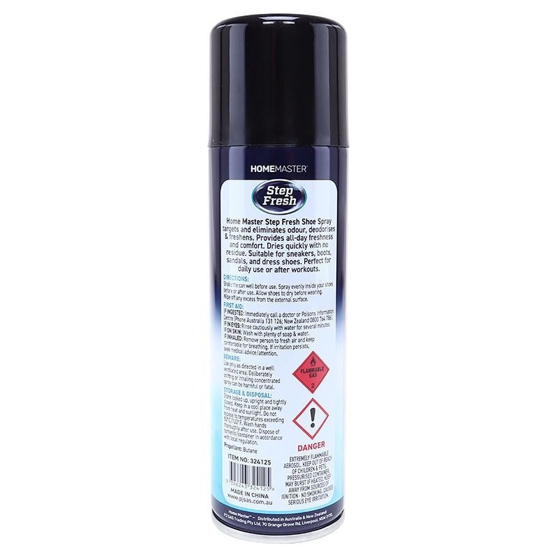 Home Master Step Fresh Shoe Spray targets and eliminates odour, deodorises & freshens. provides all-day freshness and comfort. Dries quickly with no residue. Suitable for sneakers, boots, sandals and dress shoes. Perfect for daily use or after workouts.