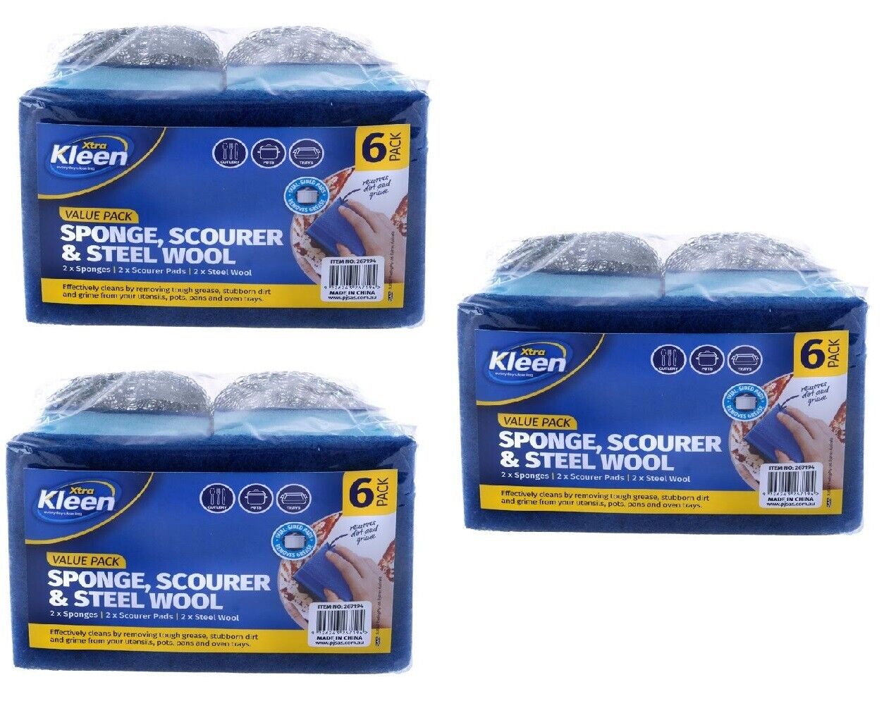 Package Includes 3x pack Xtra Kleen Sponge Scourer Pad, Steel Wool Value Pack (6 Pieces each Set)