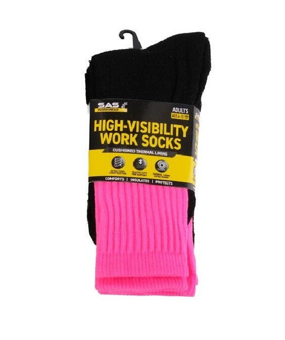 3 pairs Socks Adults Workwear Thermal High Visibility Tops Crew Cut Fluro Pink