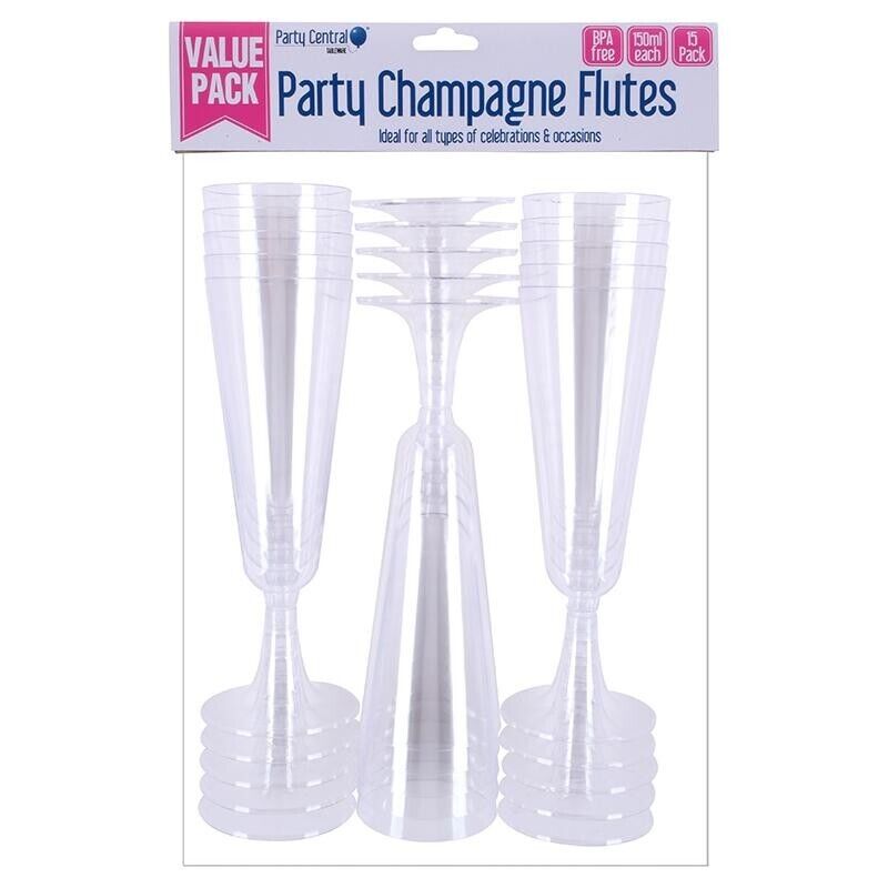 Party Central® These diposable champagne glasses are durable, stylish and leak resistant. Great for picnics, parties, BBQ's and more.