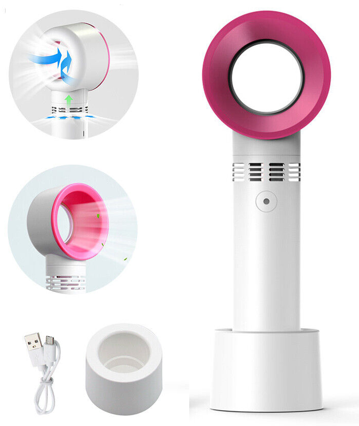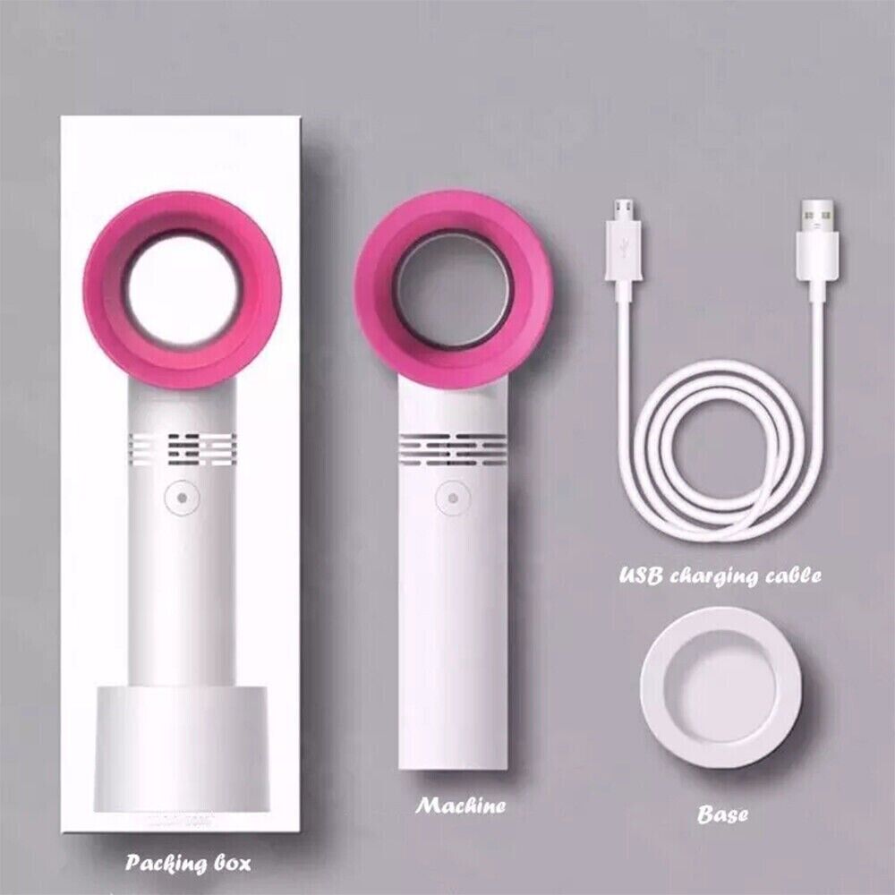 360° Mute Portable Bladeless Hand Held Mini No Leaf Handy Fan USB Cooler White