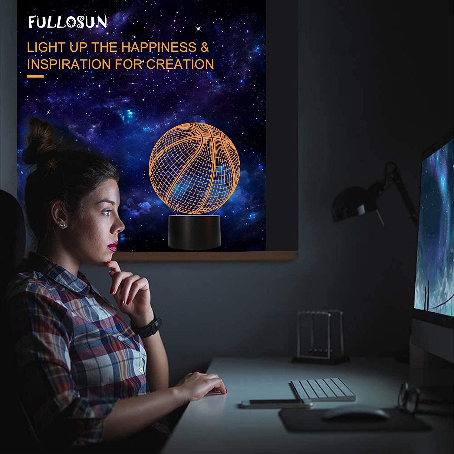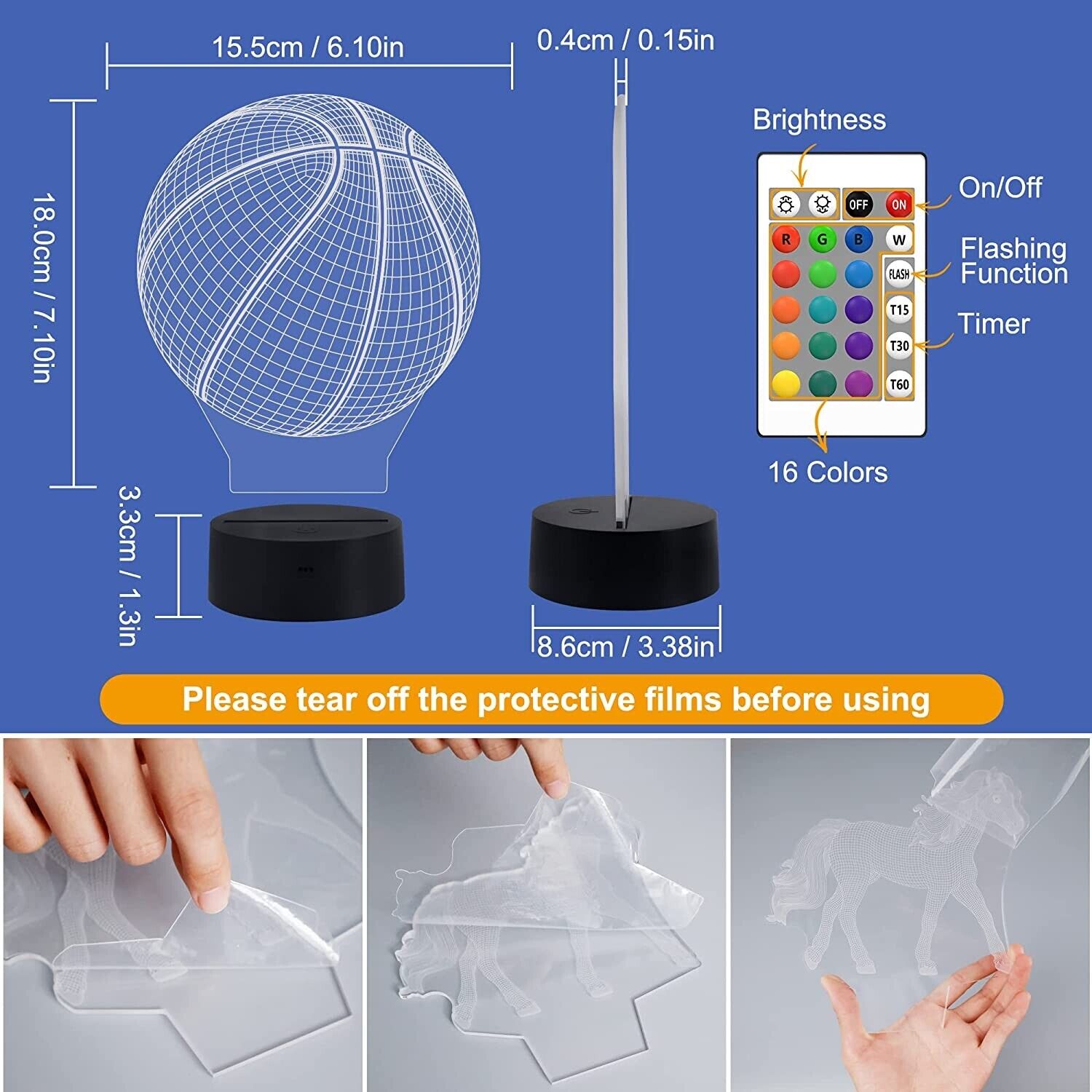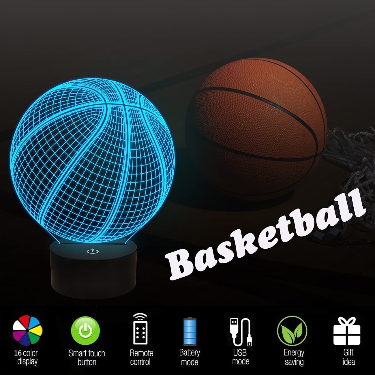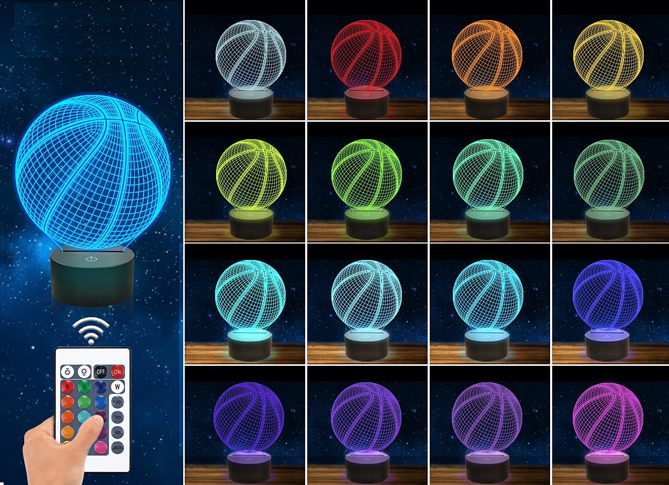 - MULTI-COLOR: Our basketball 3D desk light has 16 colors changing and 4 kinds of flashing and brightness options, the light can be dimmed and not too bright / Smart Touch & Remote Control is easy to use and your baby can change the colors from his bed.