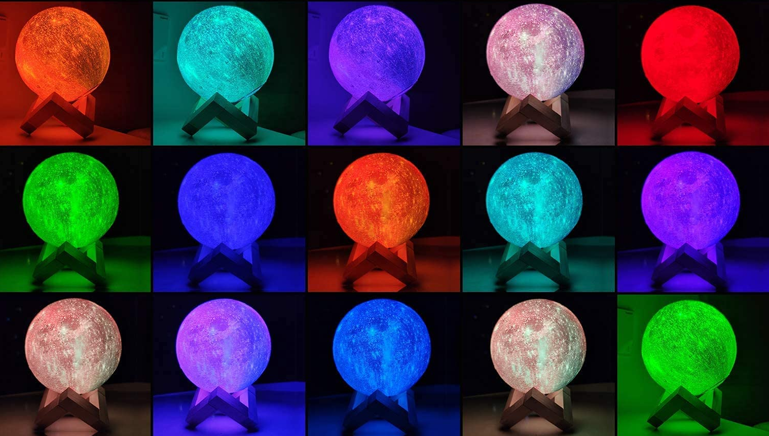 3D Printing Moon Lamp USB LED Night Light Moonlight Touch Color Changing 15cm