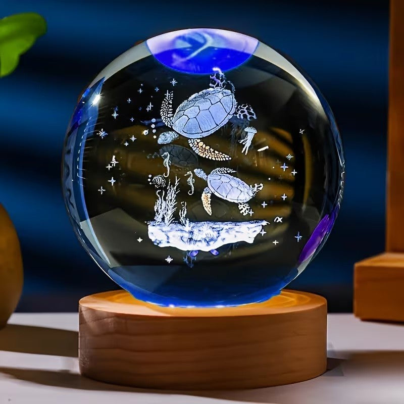 3D Turtle Crystal Ball Night Light Laser Engraved Led Color Decor Usb Gift