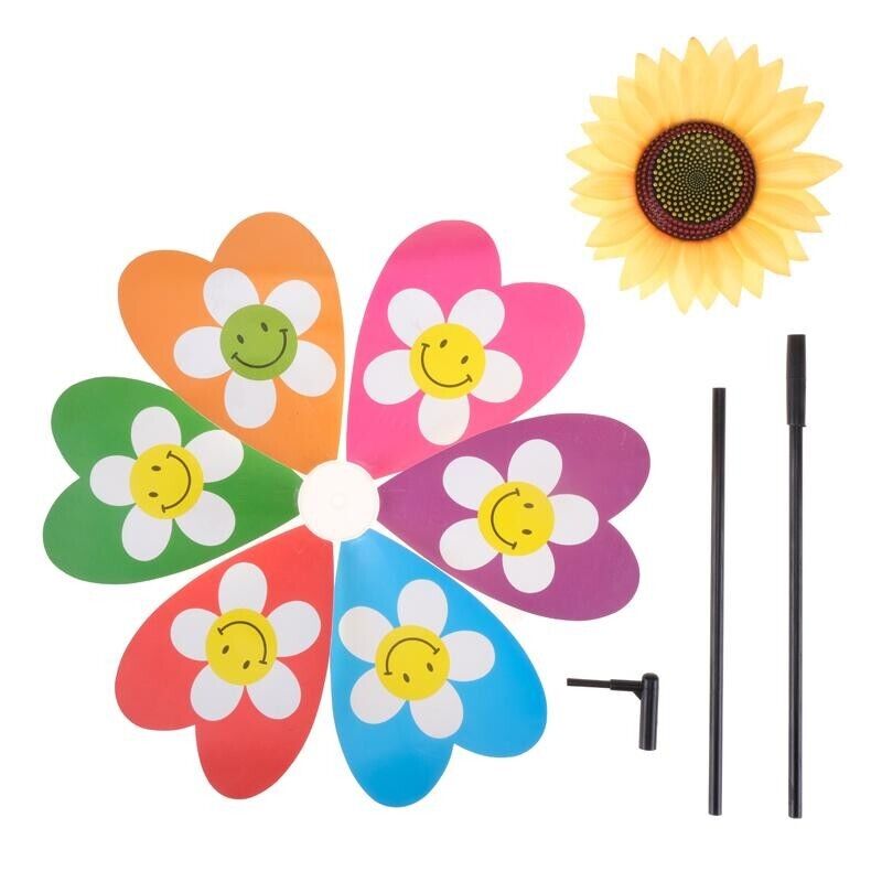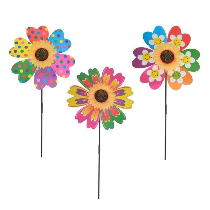 3PCE Flowers Windmill Spinner Garden Greens Flower Outdoor Multicolour 36x72cm
