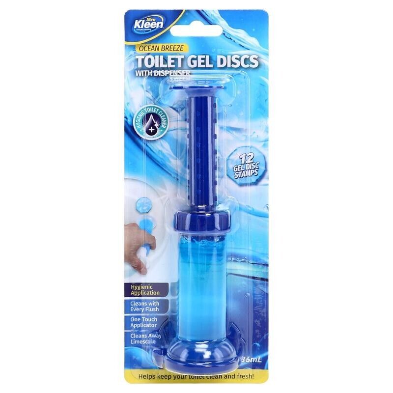 3PCE Toilet Gel Discs In Dispenser Xtra Kleen 36ml Ocean Breeze Scent
