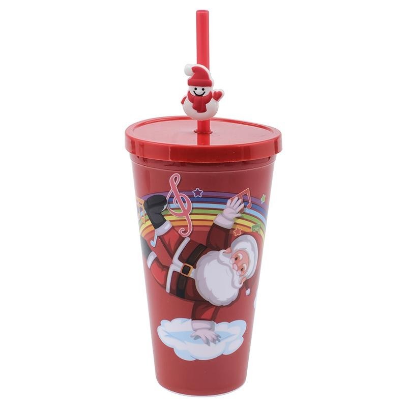 3pcs Christmas Cup with Straw & Lid 550ml Plastic Tumbler Assorted Design Xmas