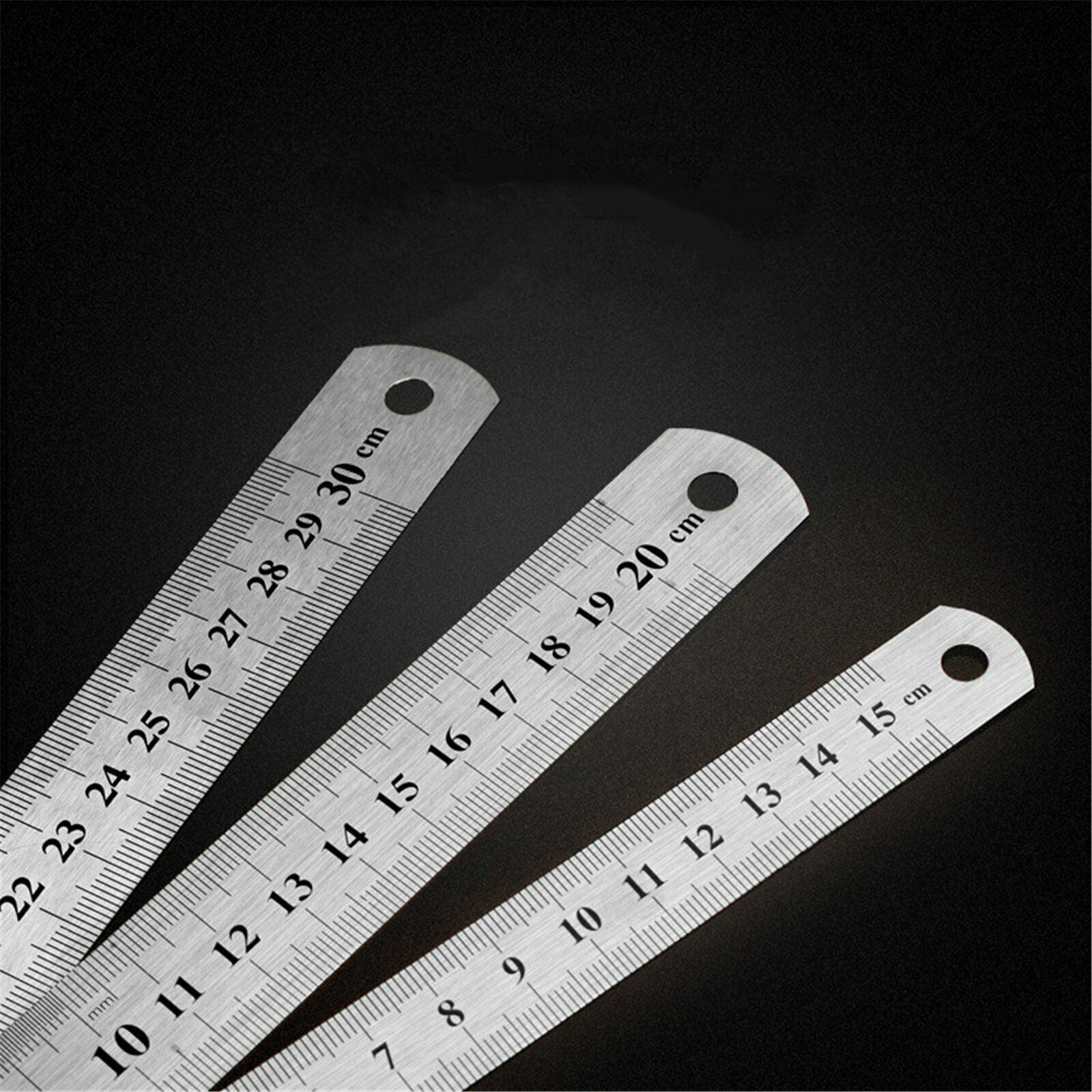 3pcs Metal Ruler Stainless Steel Double Sided 15/20/30cm Precision School Office