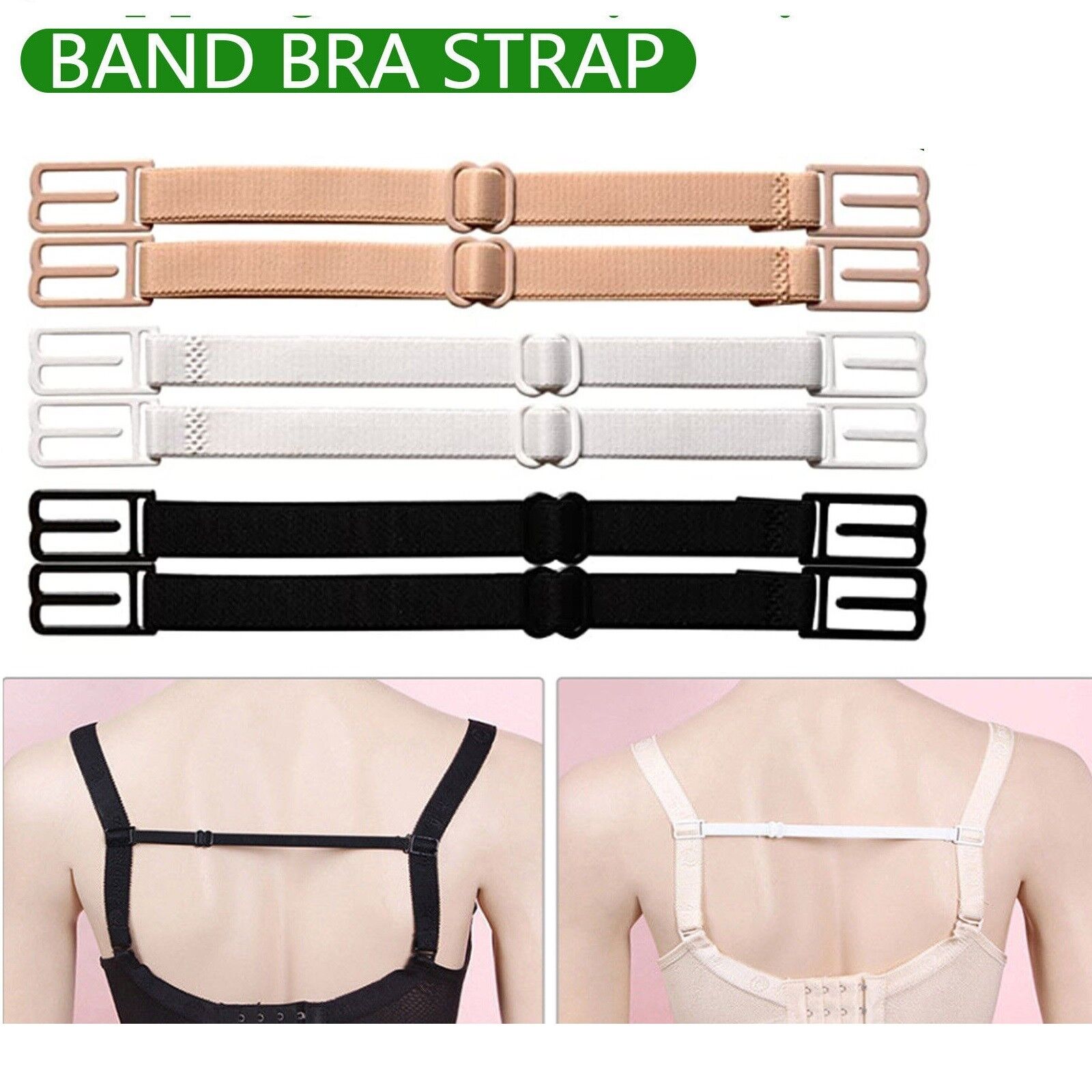 Package includes: 3 pcs Band Bra Strap (1pc white+1pc black+1pc nude)
