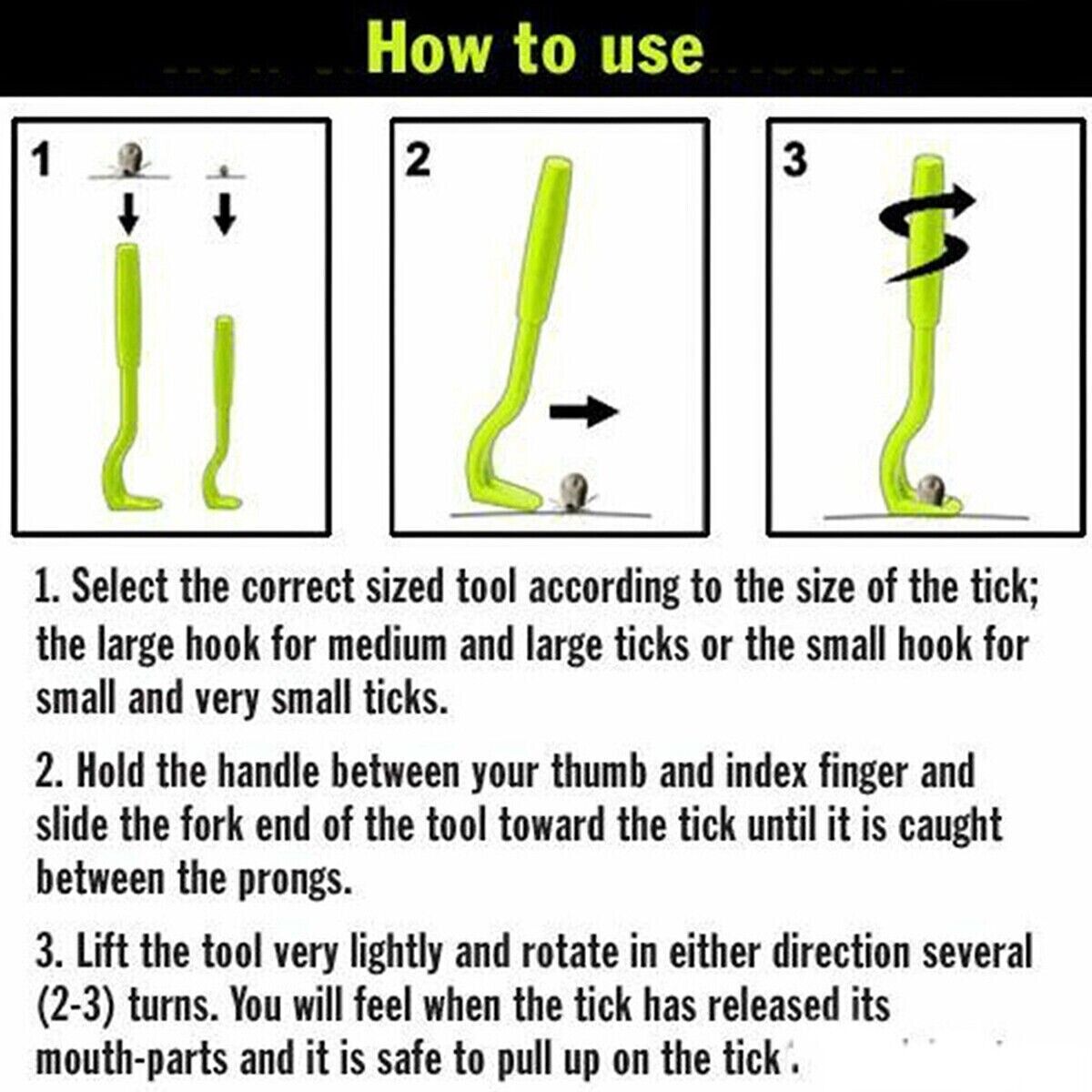 Usage: Ideal for safely removing ticks of varying sizes.