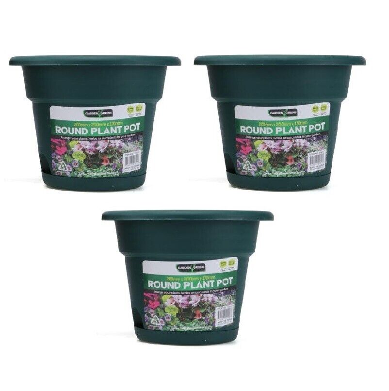 3x Plastic Plant Pots Nursery Seedlings Garden Flower Container 20x17cm - Green