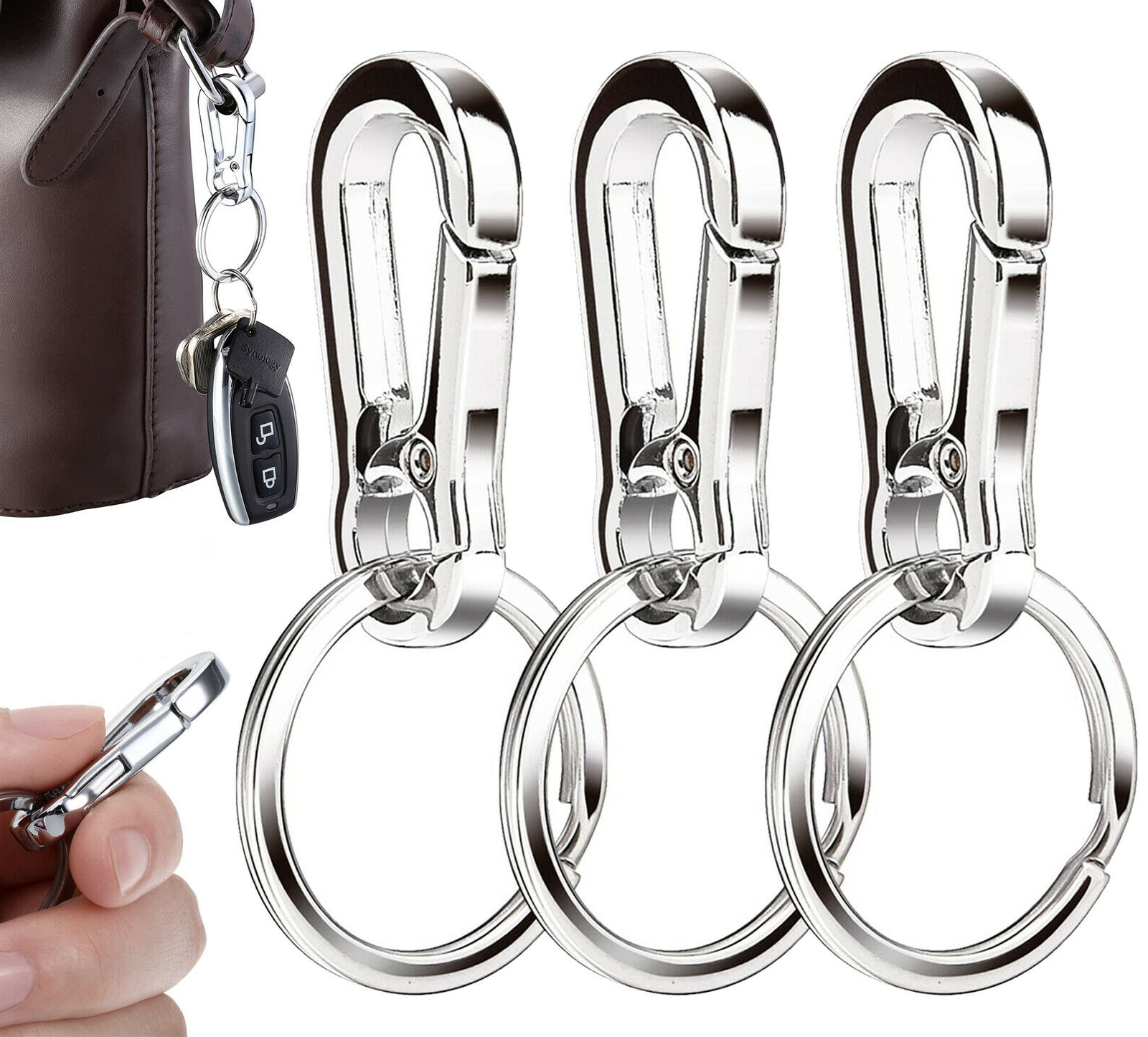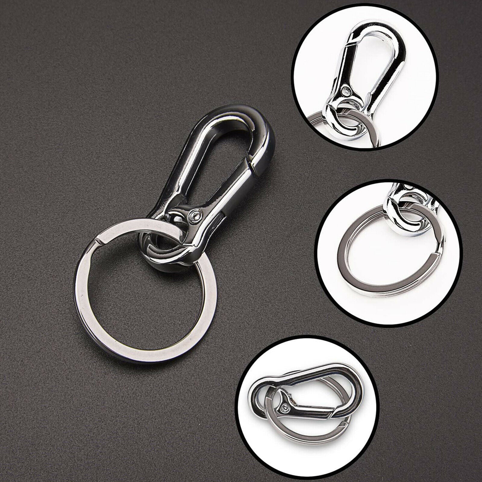 3x Stainless Steel Clasp Clips Hook Alloy Keychain Split Key Ring Durable