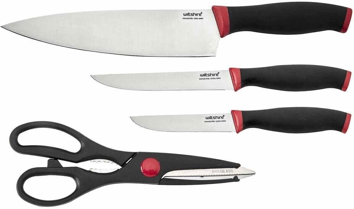 4 Piece Set Wiltshire Soft Touch Kitchen Knife and Kitchen Scissors