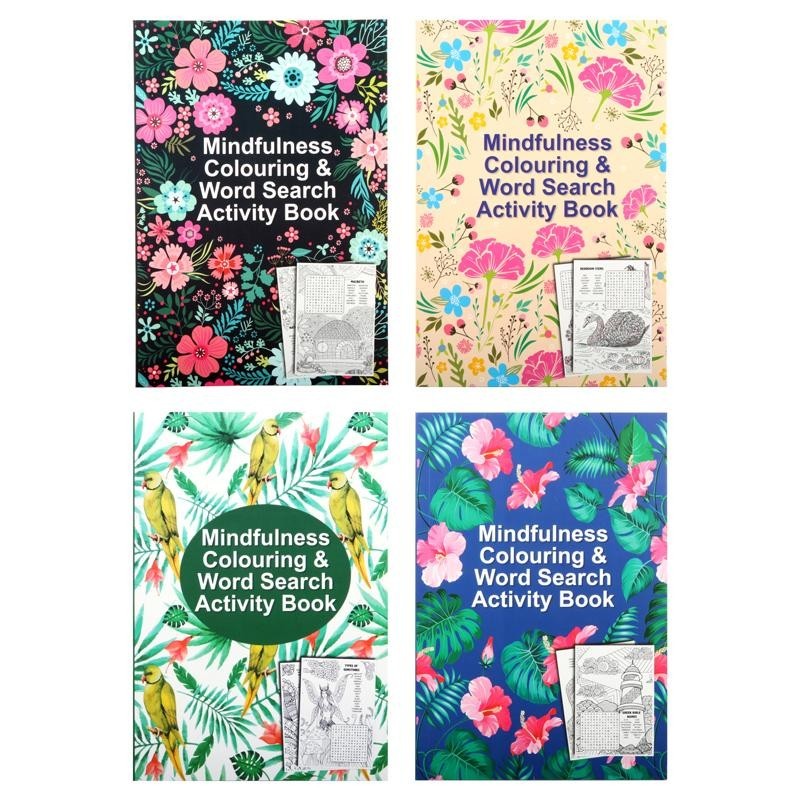 4 pieces Book Colouring Mindfulness & Wordsearch Adult Kids 96 Page