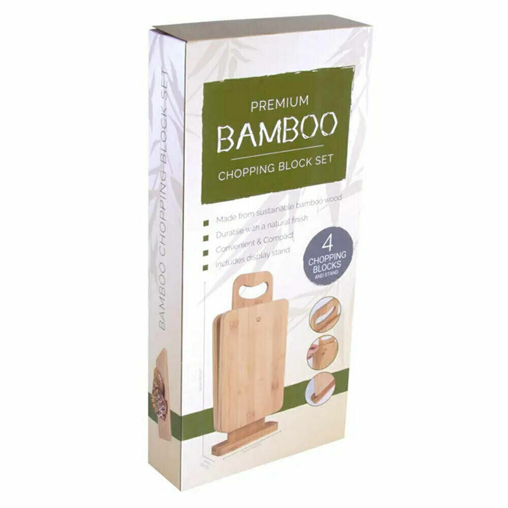 4 Pieces Chopping Block Set With Display Stand Natural Bamboo Cutting 22x14cm