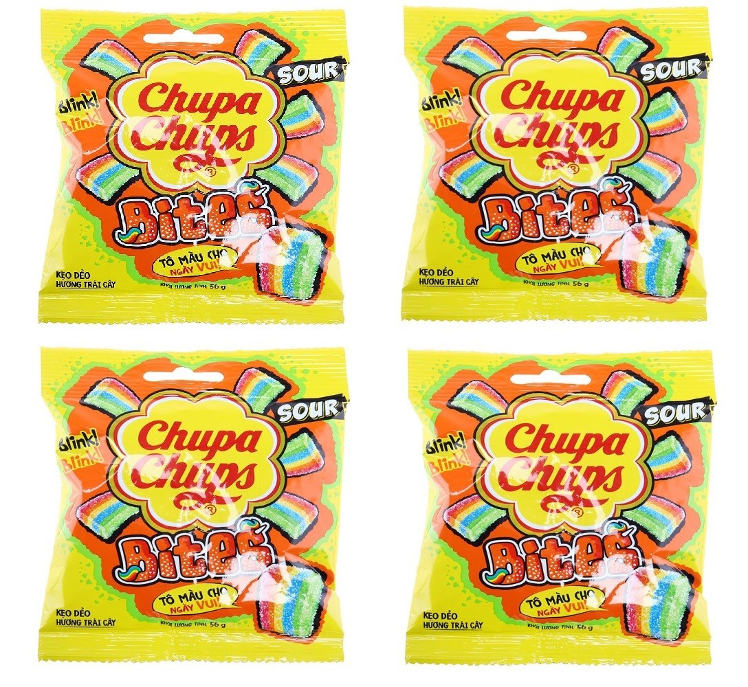 Package Includes: 4x bag Chupa Chups Sour Bites 56g