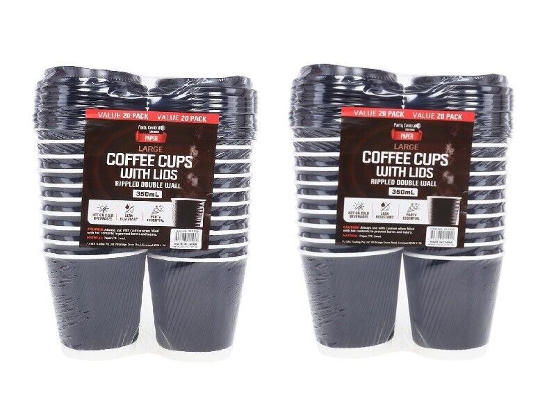 Package Includes 40pk Drinkware Paper Cup Coffee Rippled With Lid 350ml