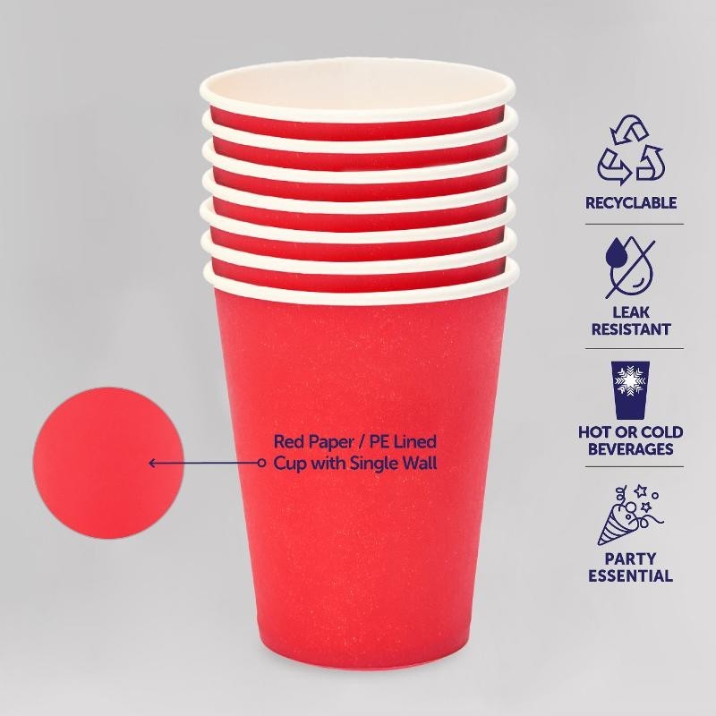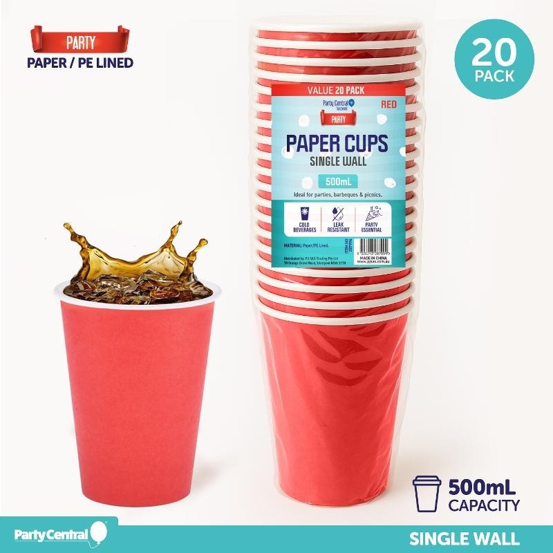 Package Includes: Pack of 40x Party Central Paper Cup Red 500ml