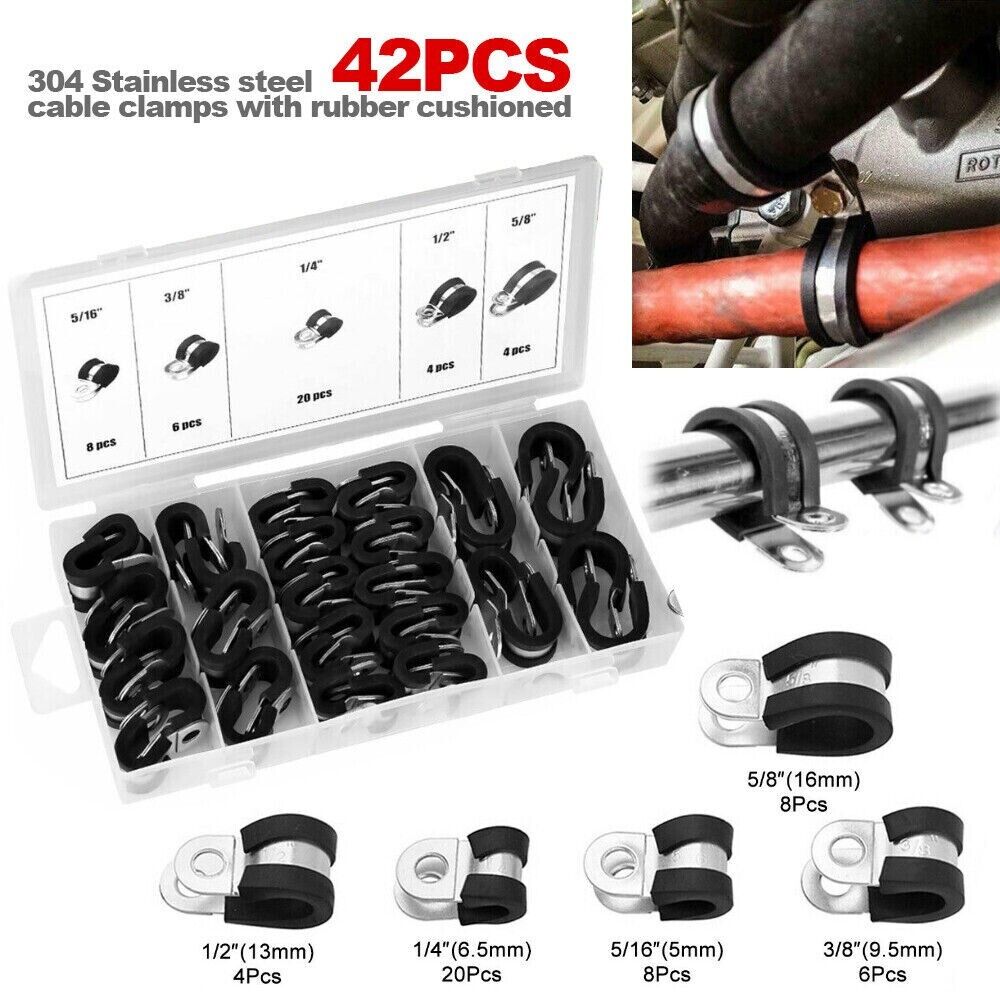 42x EPDM Rubber Lined P Clips Cable Hose Pipe Clamps Holder Air Clip Clamp Set