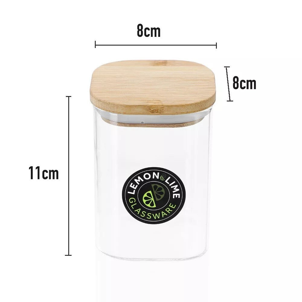 4PC Lemon & Lime Camden 550ml Glass Jar Square Storage Container w/ Bamboo Lid