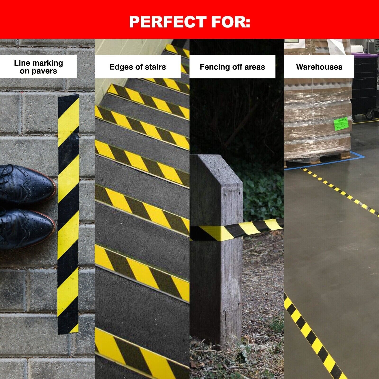 - Perfect for: Line Marking on Surfaces, Edging Stairs, Fencing off Areas, Warehouse and Industrial Facilities