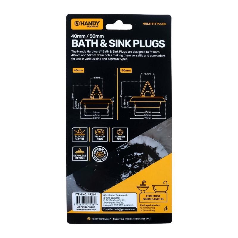 The Handy Hardware Bath & Sink Plugs are designed to fit both 40mm and 50mm drain holes making them versatile and convenient for use in various sink and bathtub types.
