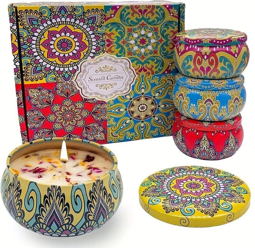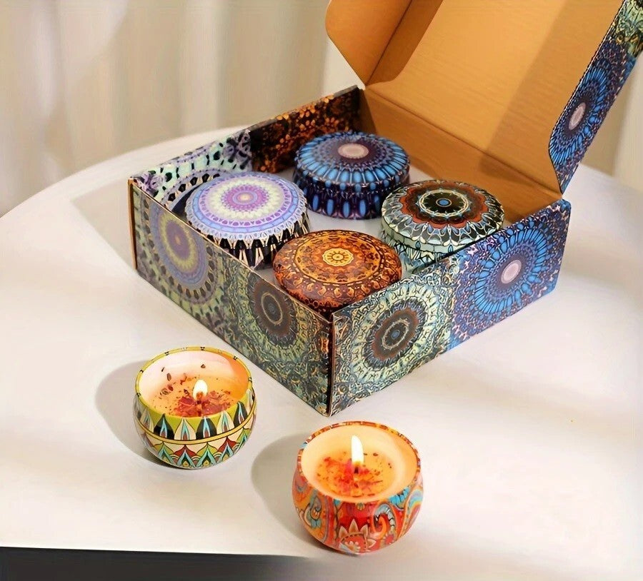 4pcs Fragrant Candles Set Scented Candle Decorative Tin Gift Wax Scented
