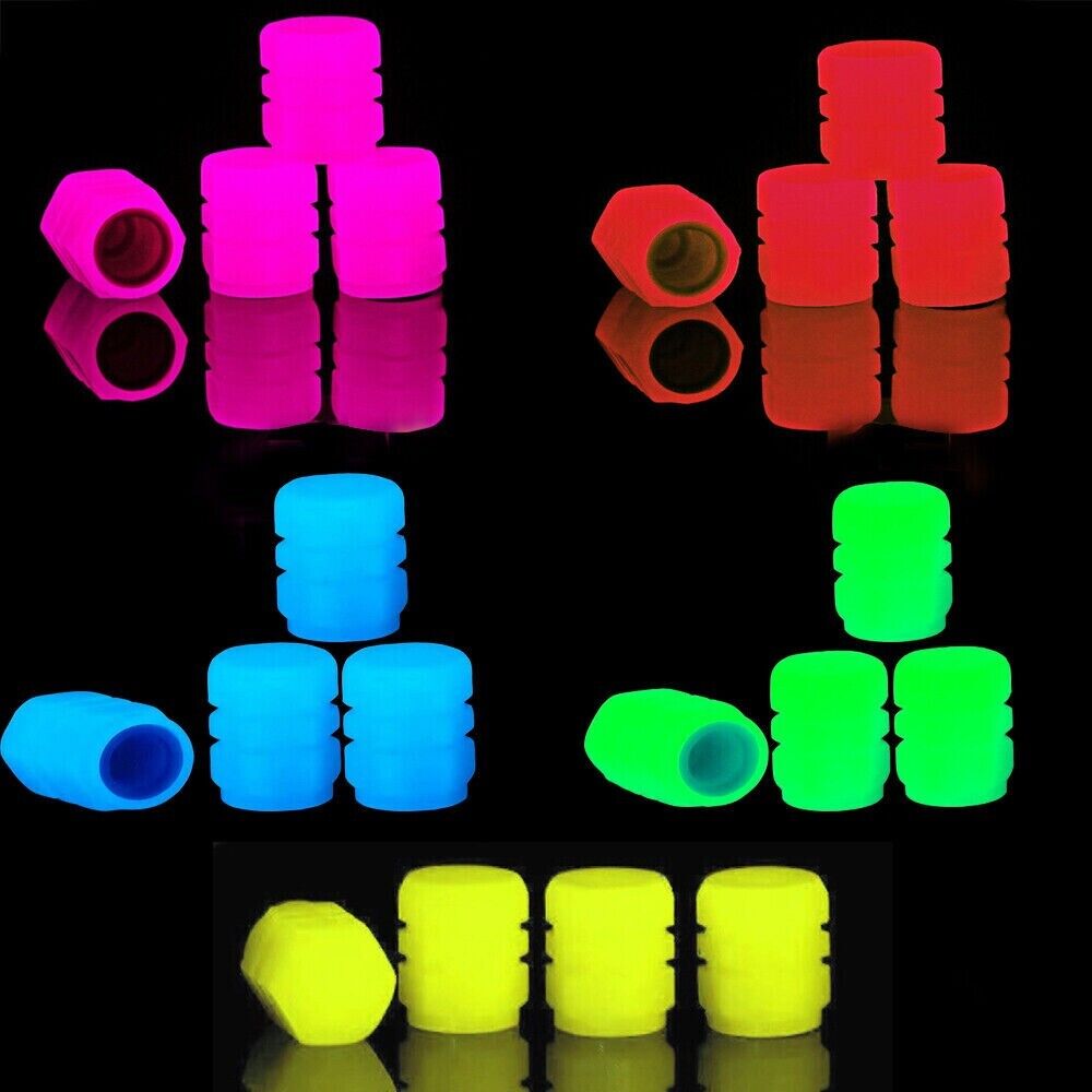 4pcs Luminous Tire Valve Cap Car Wheel Dust Covers Glow In The Dark -Pink