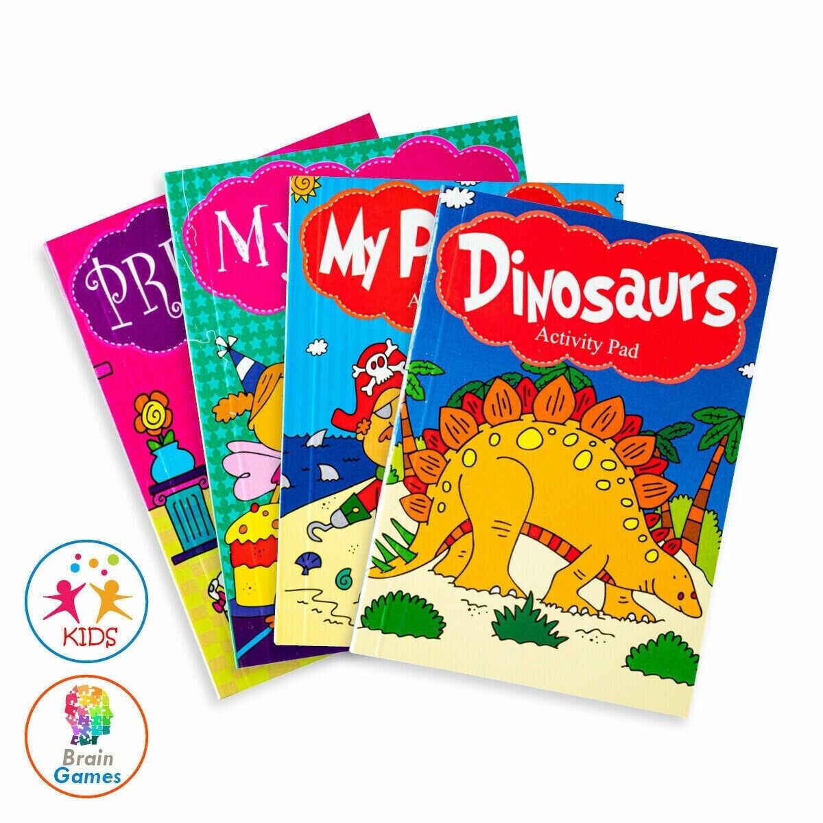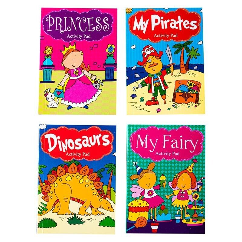 4x Activity Books Princess Fairy Pirate Dinosaur Colouring Fun Creative Book Pad