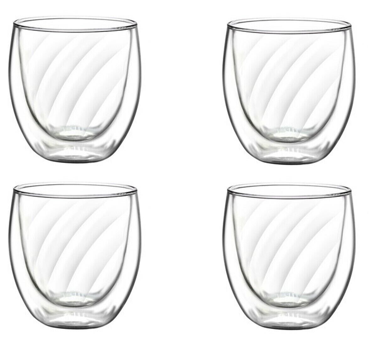 4x Double Wall Glass Cup Glasses Mug Hot Cold Drink Eliza Coffee Latte Tea 250ml