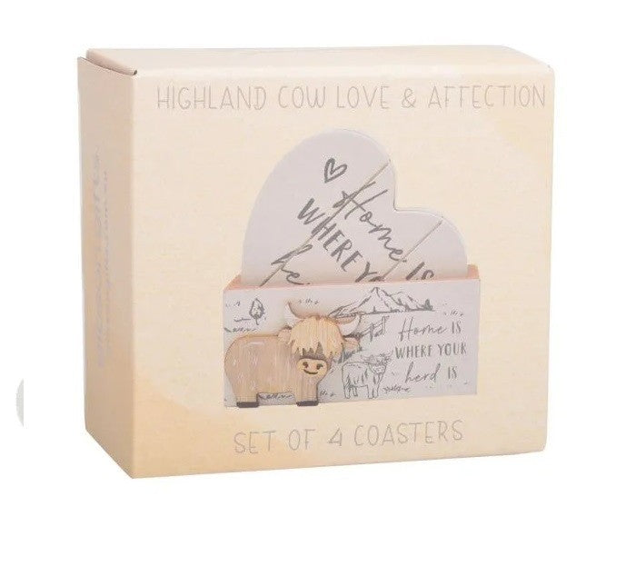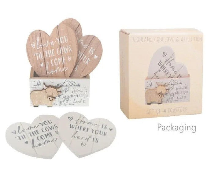4x Highland Cow Coasters Heart Coaster Drinks Holder Home Decor 12x6x11cm