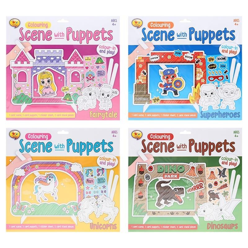 Colouring Scene Kit With Puppets, Create Your Stories And Play