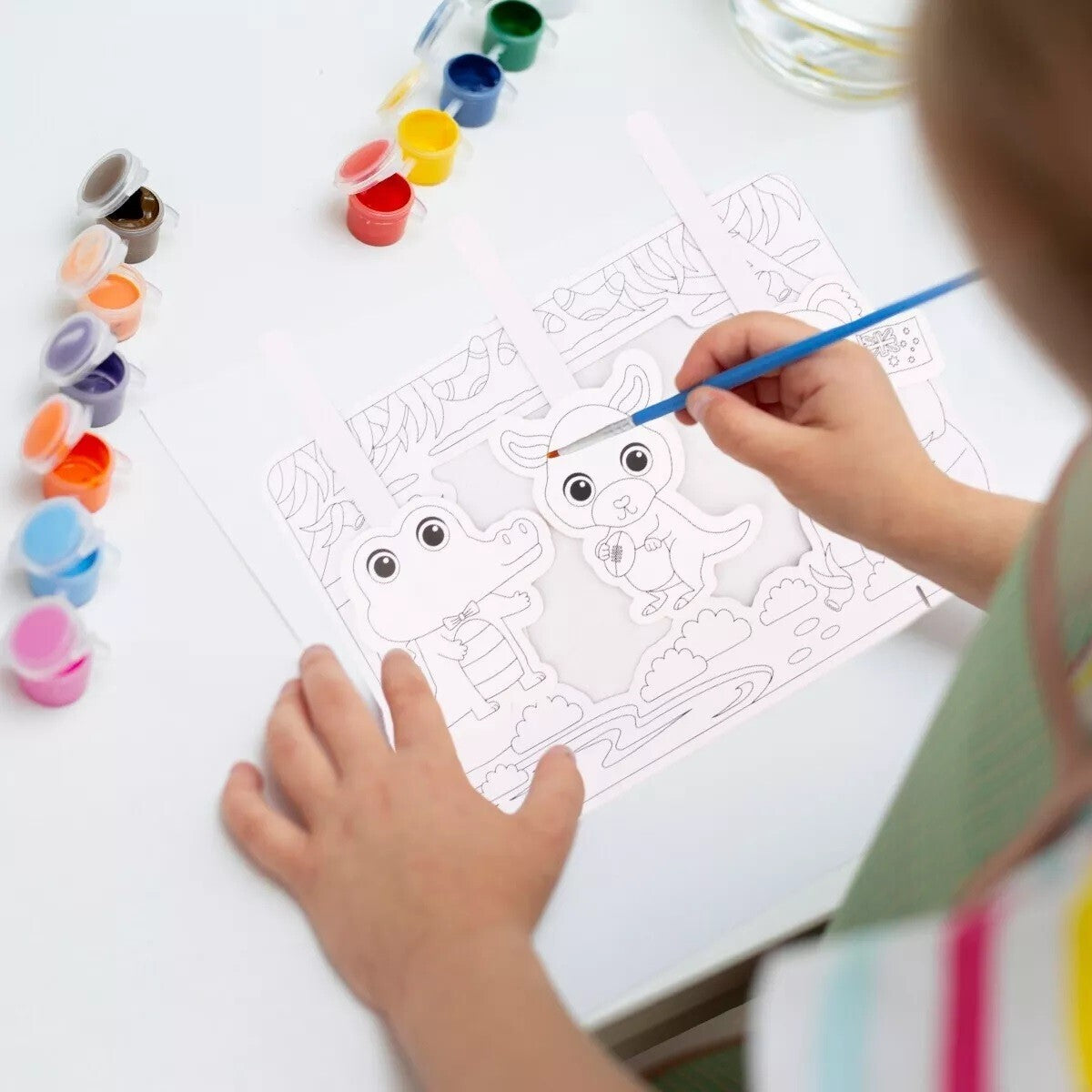 Spark your creativity and storytelling abilities with PortaCraft's Colouring Scene Kit With Puppets!