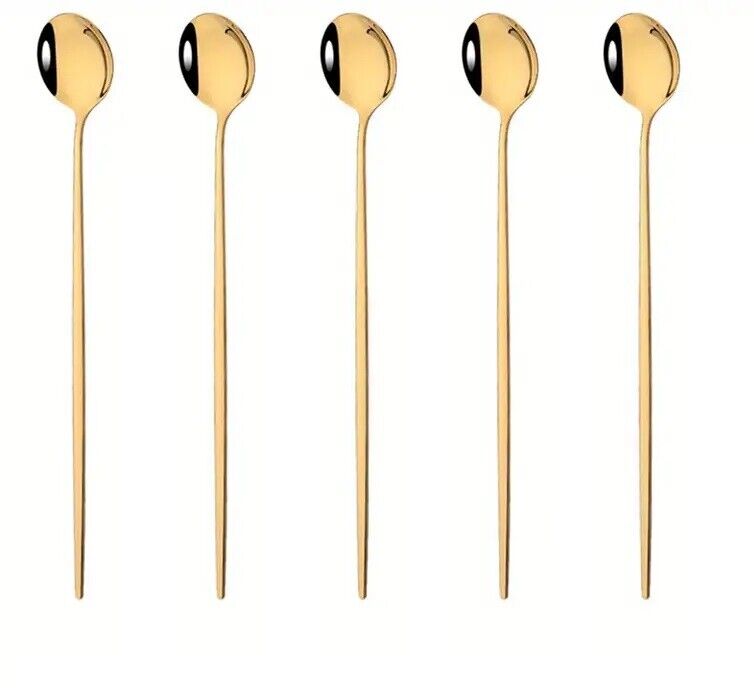 Package Includes: 5 Pcs Long Handled Coffee Spoon -Golden