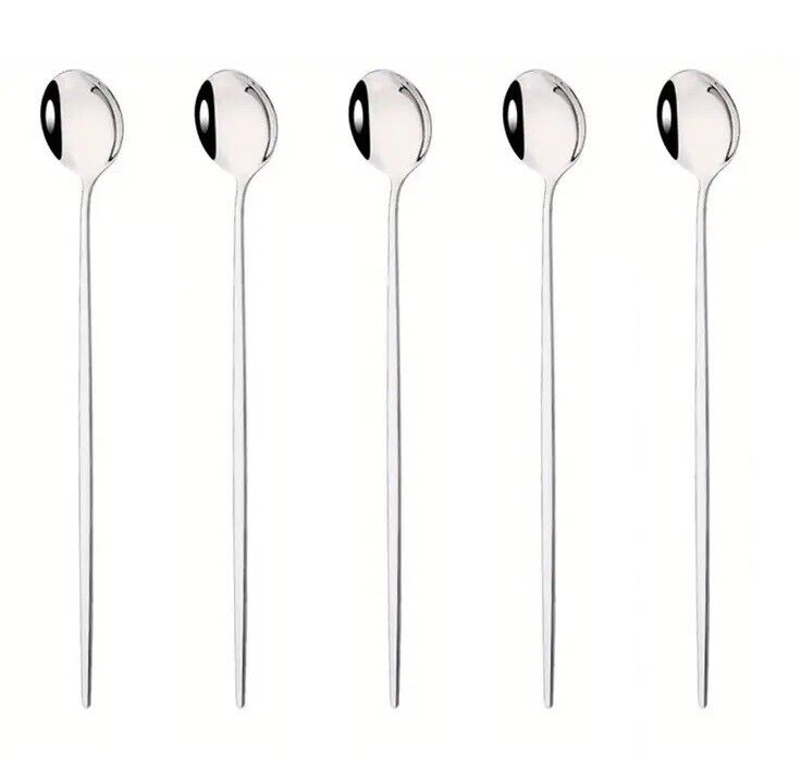Package Includes: 5 Pcs Long Handled Coffee Spoon -Silver