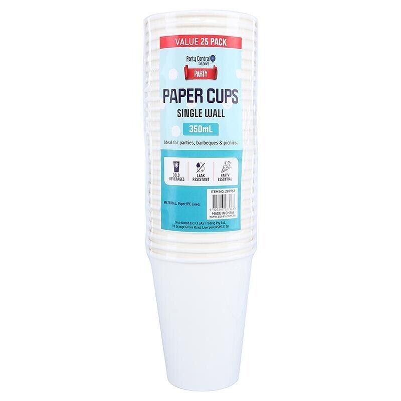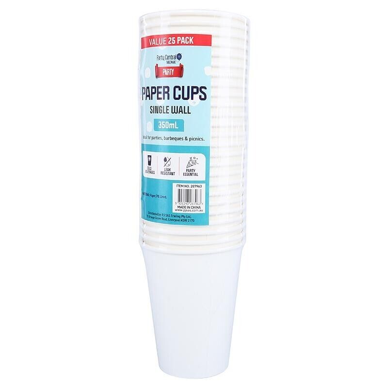 Package Includes: Pack of 60 Party Central Paper Cup White 200ml