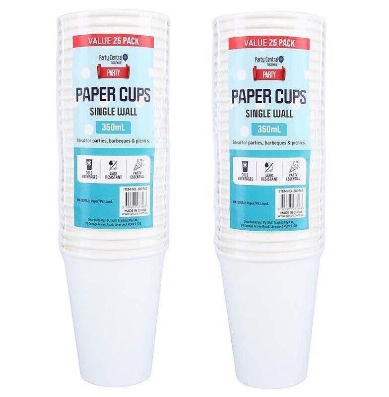 50pce Disposable Paper Cup Party Bulk Pack Drinks Cups BBQ Picnic - 350ml White