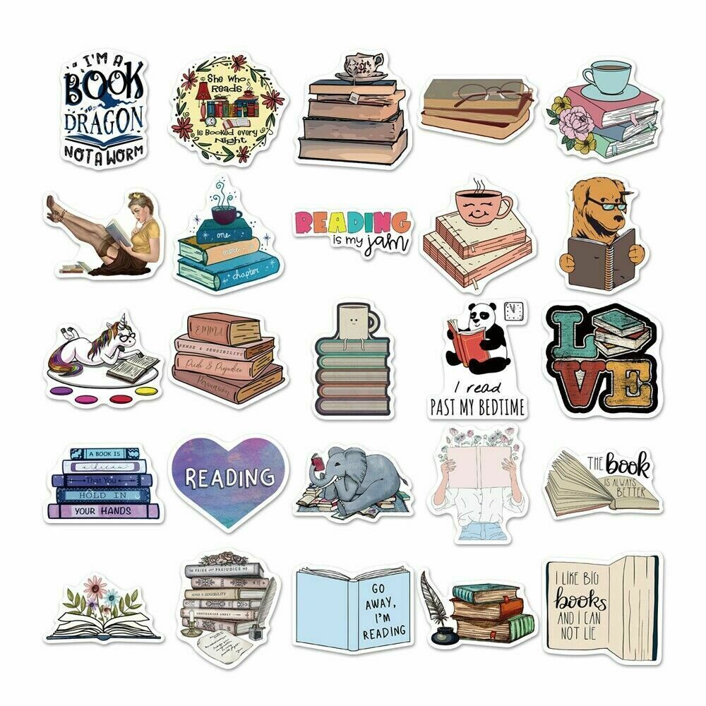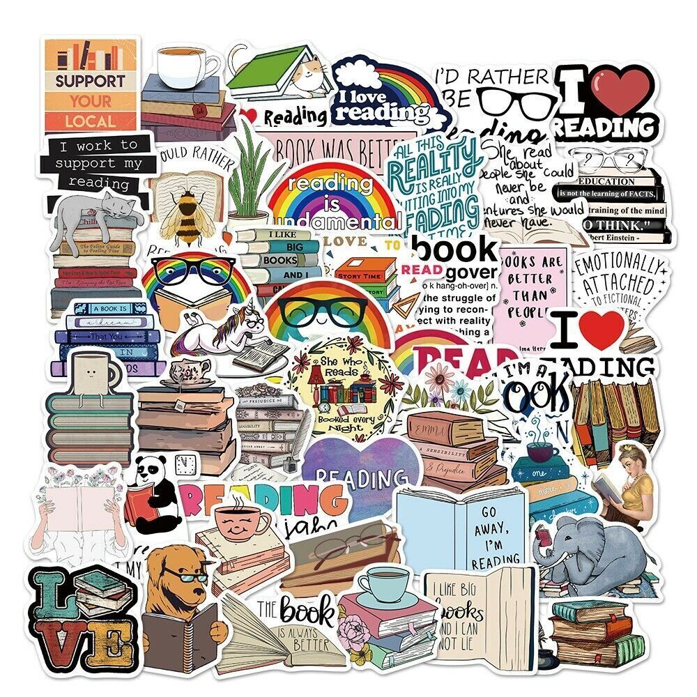 50pcs Study-Reading Book Library Love Stickers Vinyl Decal Waterproof Laptop