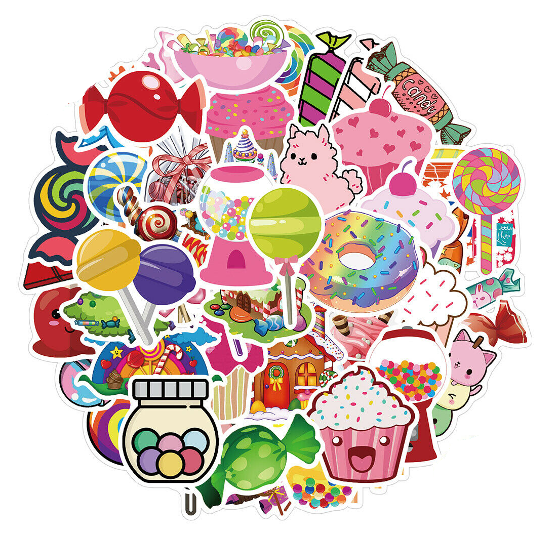 50x Candy Cupcake Lolly Jelly Beans Stickers Mix Bomb Vinyl Decal Laptop Phone