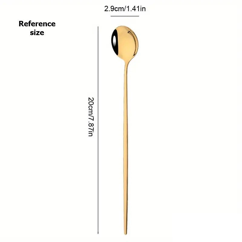 5pcs Long Handle Coffee Spoon Round Stainless Steel Tea Stirring Black & Gold