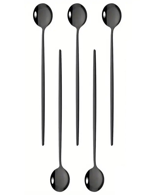 Package Includes: 5 Pcs Long Handled Coffee Spoon - Black