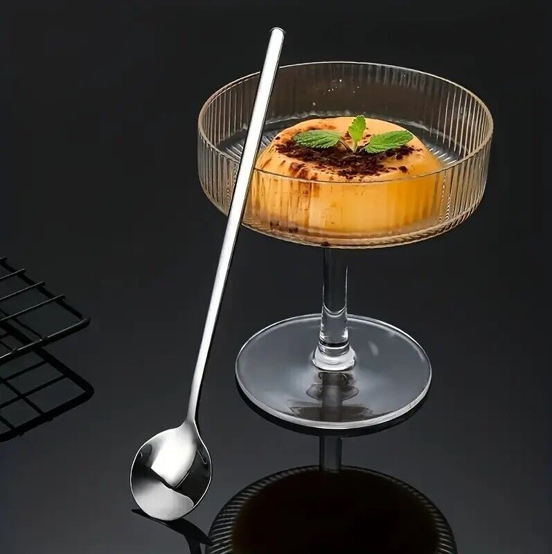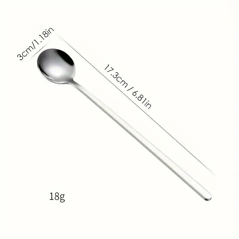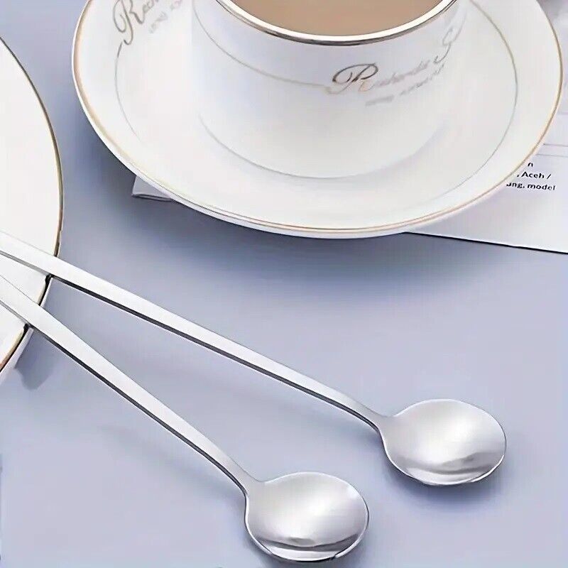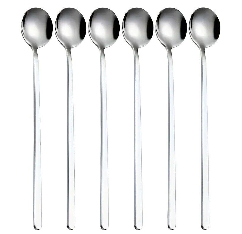 6 Pcs Long Handled Coffee Spoon Roound Stainless Steel Cold Drink Ice Cream Tea
