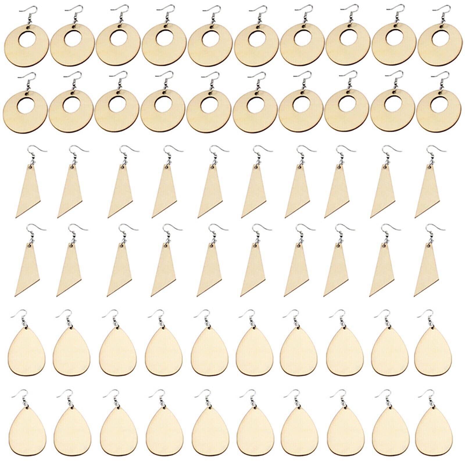 - 60 pieces of unfinished wood earring pendants in 3 different styles,
