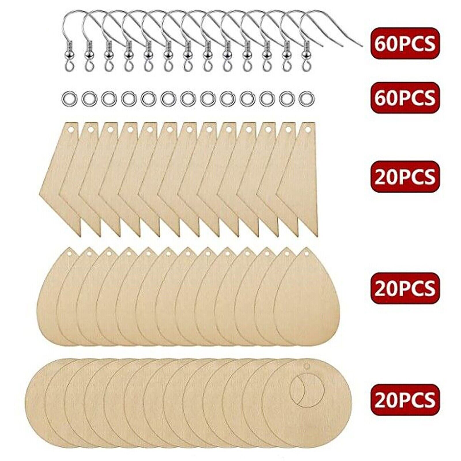 60pcs Unfinished Wooden Earrings Pendants Blank Pendants Jewelry Making Kit DIY