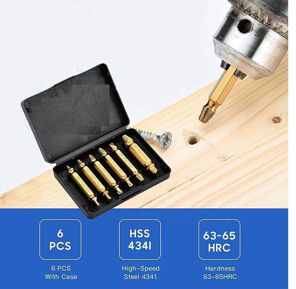 6pcs Damaged Screw Extractor Speed Out Drill Bits Tool Set Broken Bolt Remover